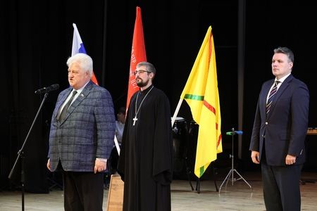 В зале собрались ветераны боевых действий, юнармейцы, общественники и жители города, чтобы отдать дань уважения подвигу всех тех, кто в различные периоды истории стоял и продолжает стоять на защите национальных интересов России.